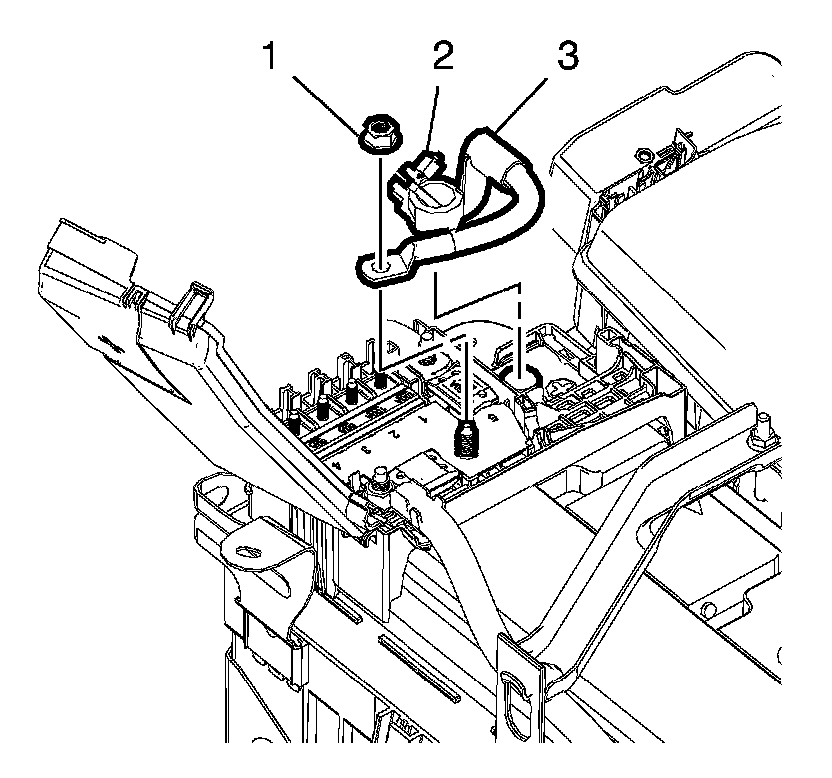 1. Install the battery positive cable to fuse box cable (3).