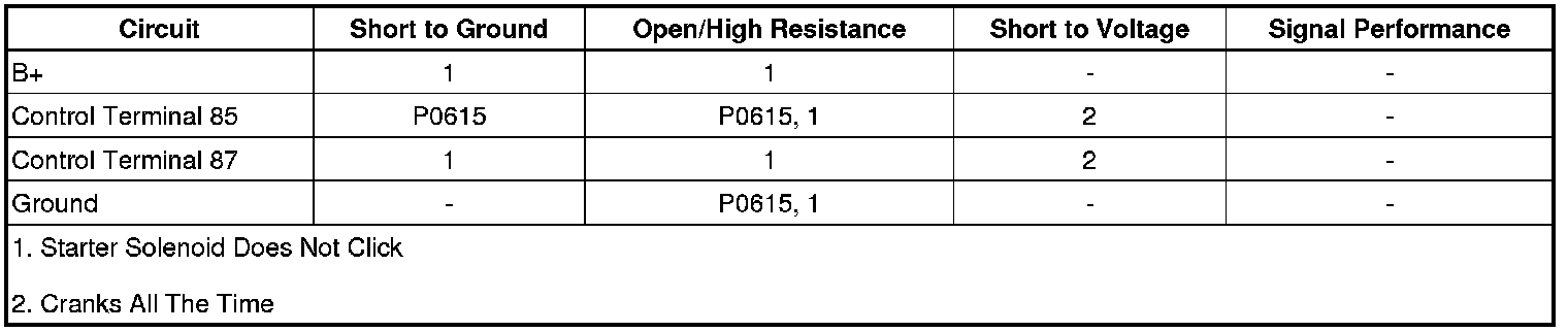 • If the starter relay does not click or the engine does not crank, refer to Circuit/System Testing.