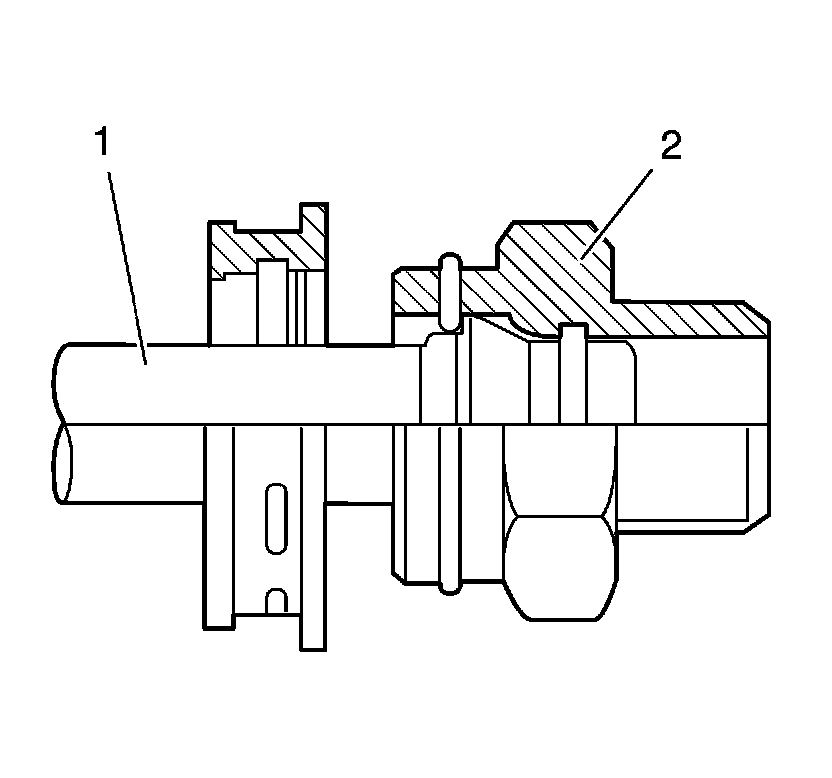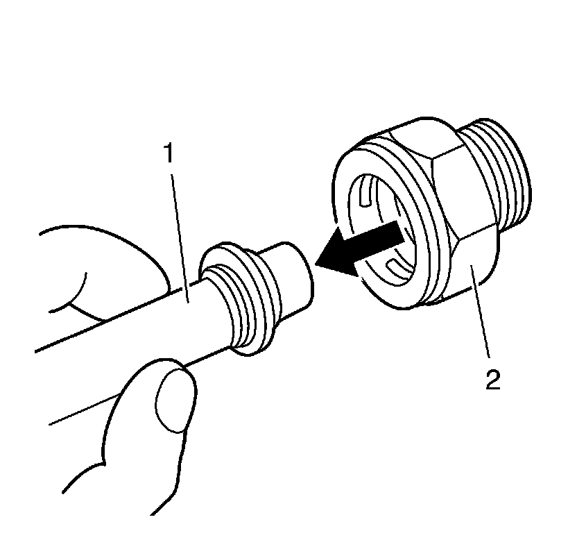 2. Install the cooler line (1) into the quick connect fitting (2).