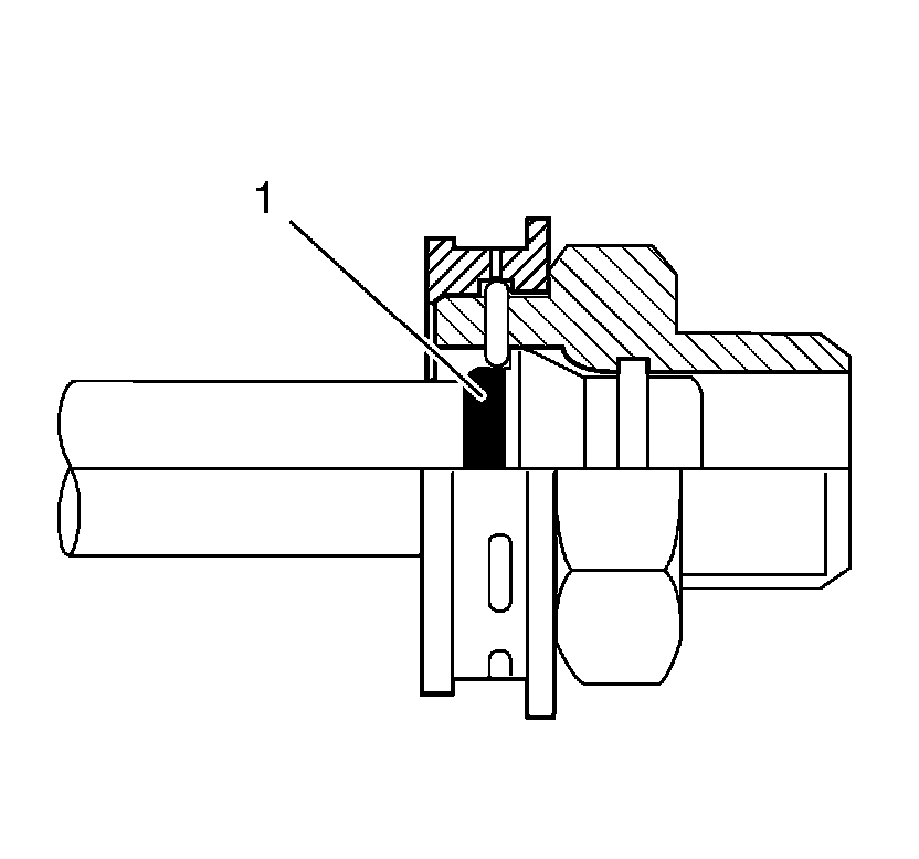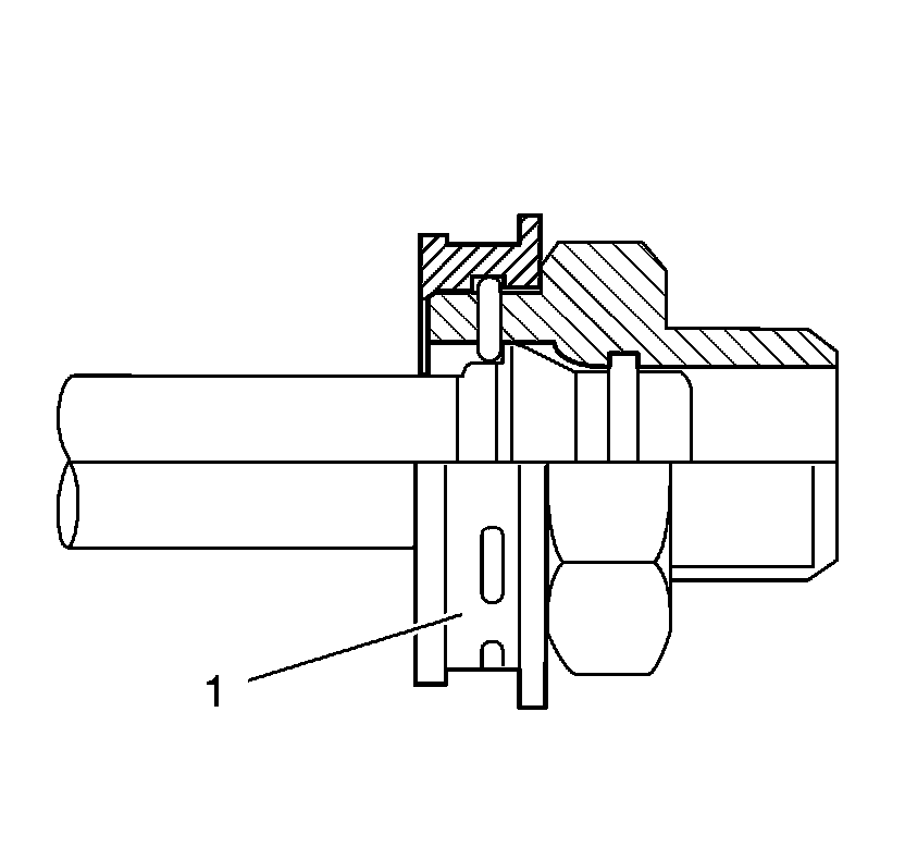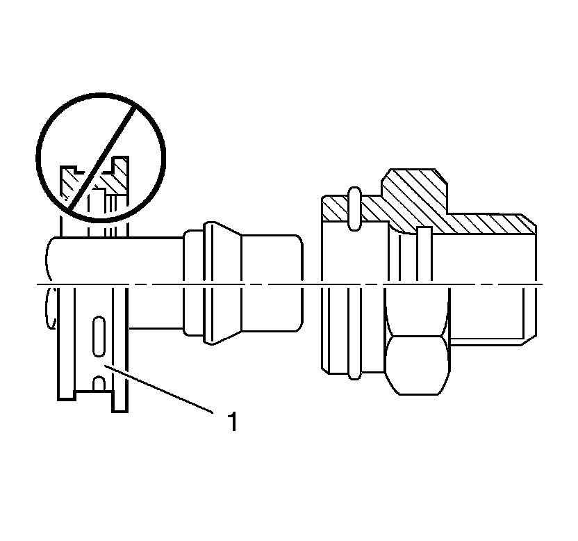 9. Ensure that the yellow identification band (1) on the tube is hidden within the quick connect fitting.