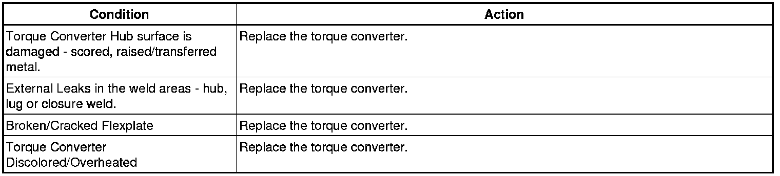 When installing the torque converter to the flexplate, make sure to use specified bolts. DO NOT use longer bolts. Using longer bolts will result in deformation of the torque converter cover and cause internal damage.
