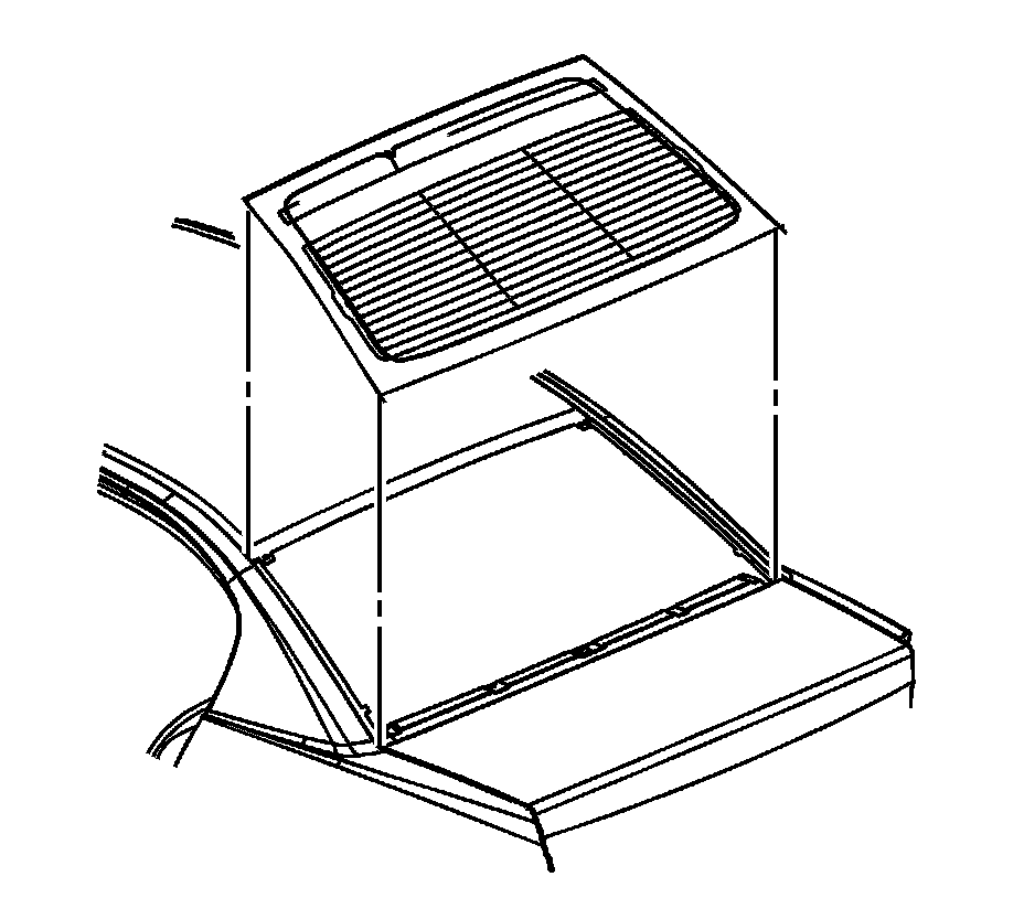 2. Remove the left and right body lock pillar trim panel. Refer to Body Lock Pillar Trim Panel Replacement (without Roof Side Rail Airbag) Body Lock Pillar Trim Panel Replacement (without Roof Side Rail Airbag)Body Lock Pillar Trim Panel Replacement (with Roof Side Rail Airbag) Body Lock Pillar Trim Panel Replacement (with Roof Side Rail Airbag).