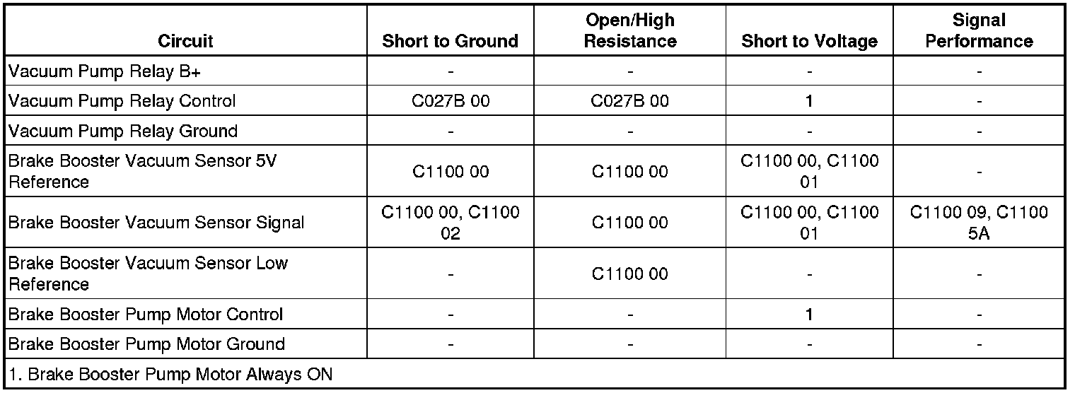 The brake booster vacuum sensor measures the vacuum in the brake booster assembly. The electronic brake control module supplies a 5 V reference and a low reference circuit to the brake booster vacuum sensor. The vacuum sensor supplies a voltage signal in relation to the pressure in the brake booster to the electronic brake control module. When the vacuum within the system becomes weak, the electronic brake control module turns ON the brake booster pump motor by providing battery voltage to the brake booster pump motor relay. The relay activates and supplies ground to the brake booster pump motor.