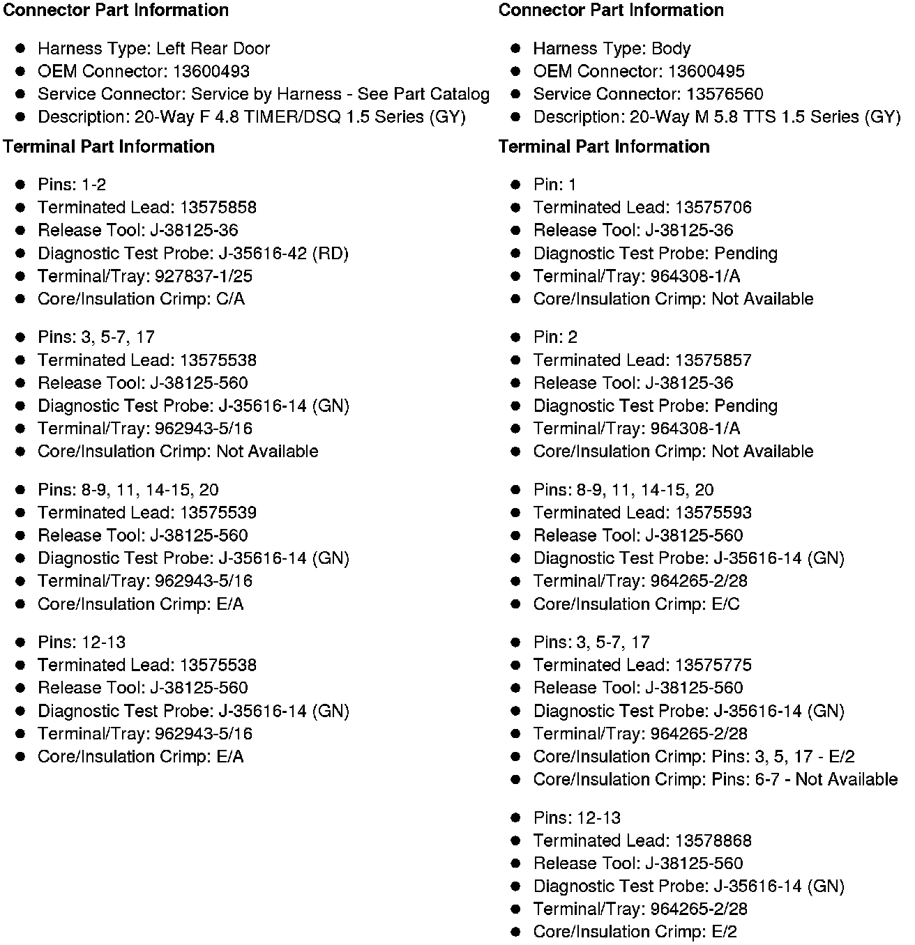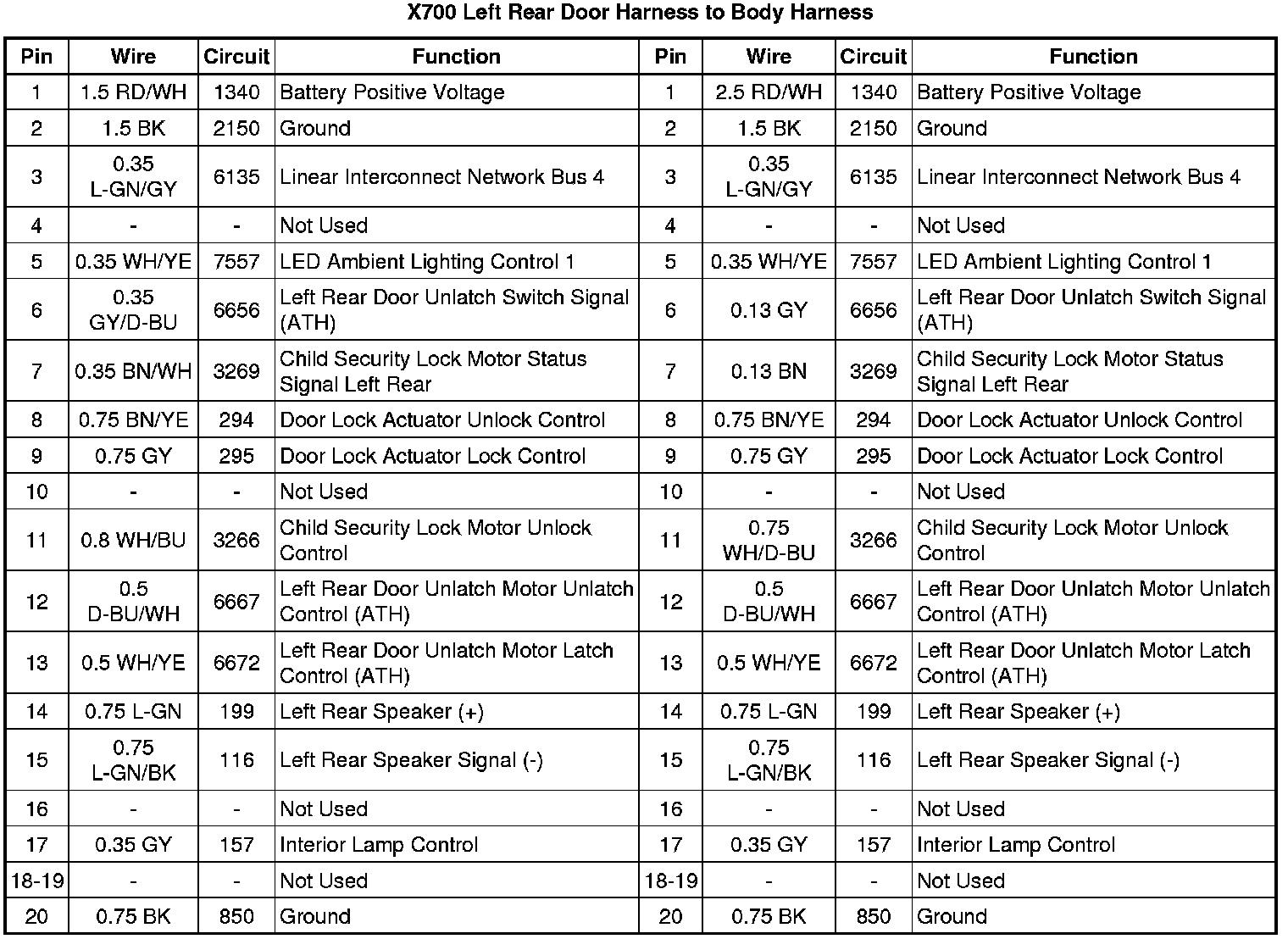 X700 Left Rear Door Harness to Body Harness