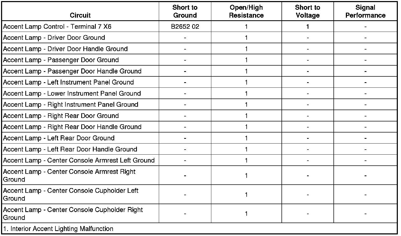 Interior Accent Lighting Malfunction