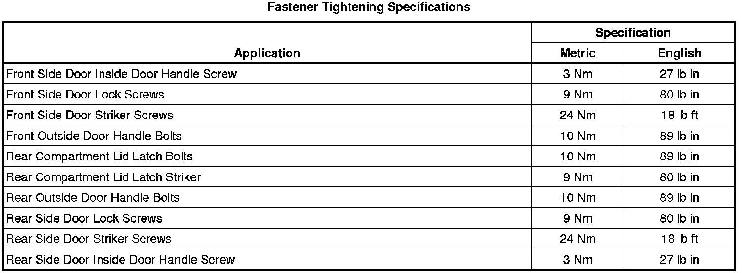 Fastener Tightening Specifications