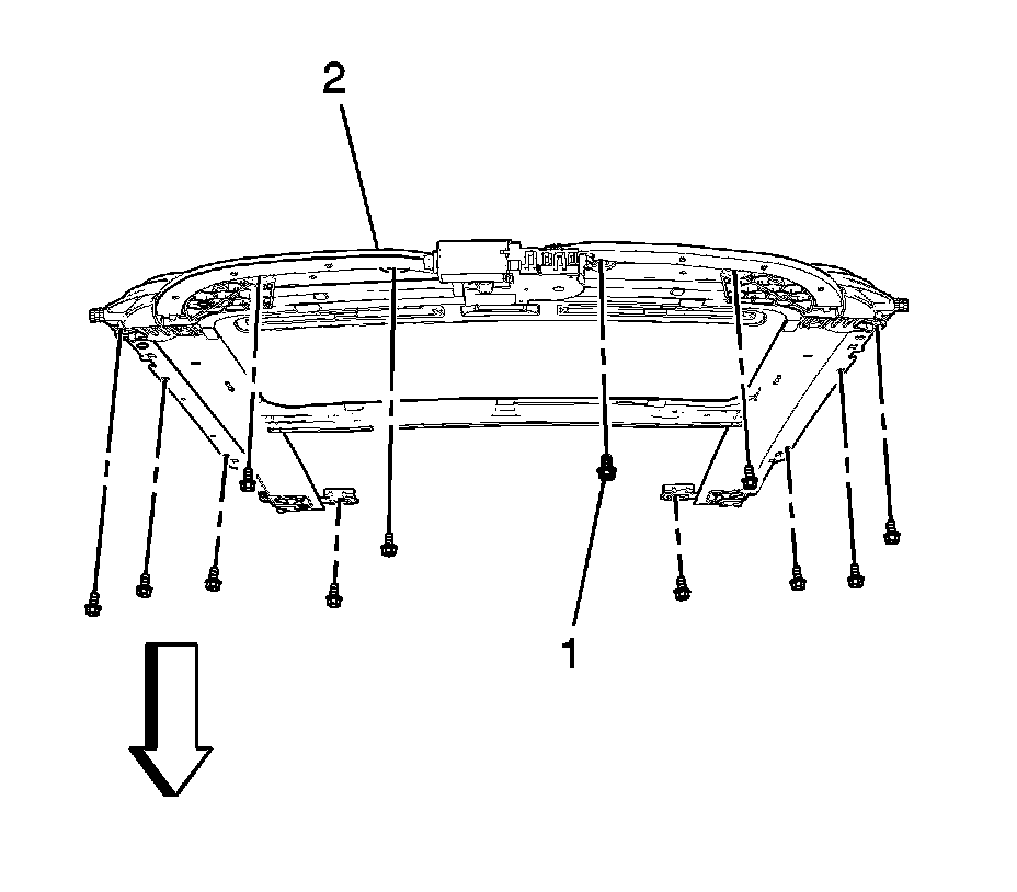 3. Install the sunroof housing (2) assembly with the remaining fasteners and tighten to 9 Nm (80 lb in).
