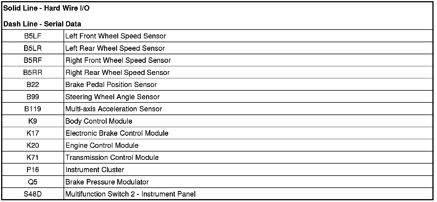 * Steering wheel angle sensor - The electronic brake control module receives serial data message inputs from the steering angle sensor. The steering angle sensor signal is used to calculate the desired yaw rate.