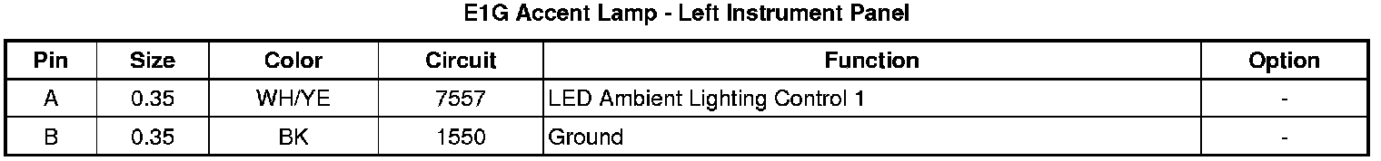E1G Accent Lamp - Left Instrument Panel