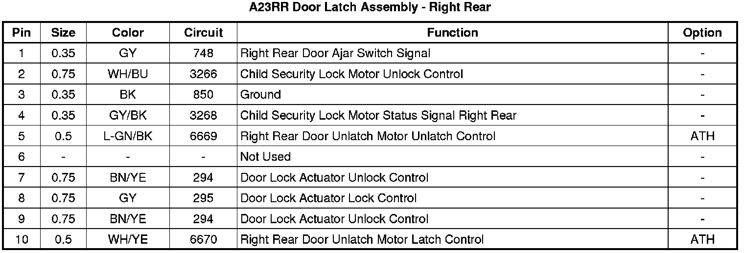 A23RR Door Latch Assembly - Right Rear