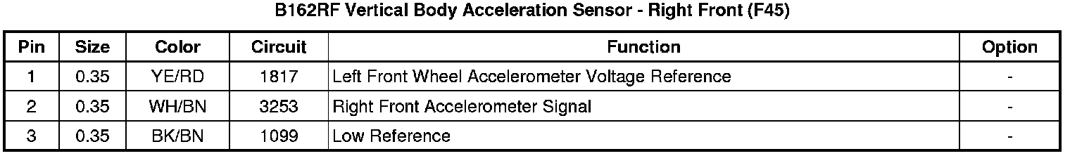 B162RF Vertical Body Acceleration Sensor - Right Front (F45)