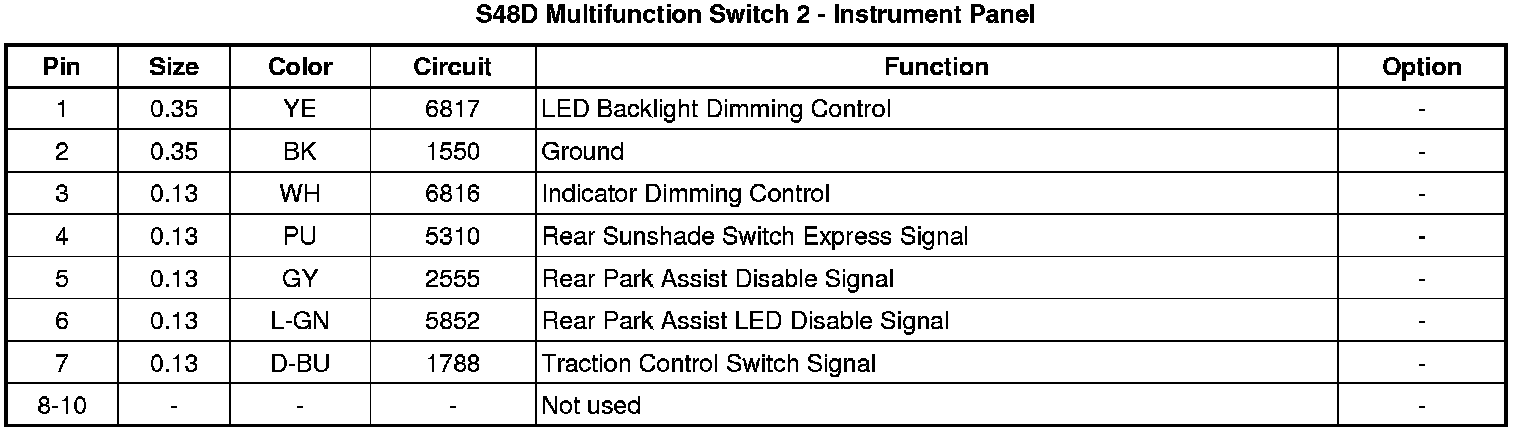 S48D Multifunction Switch 2 - Instrument Panel