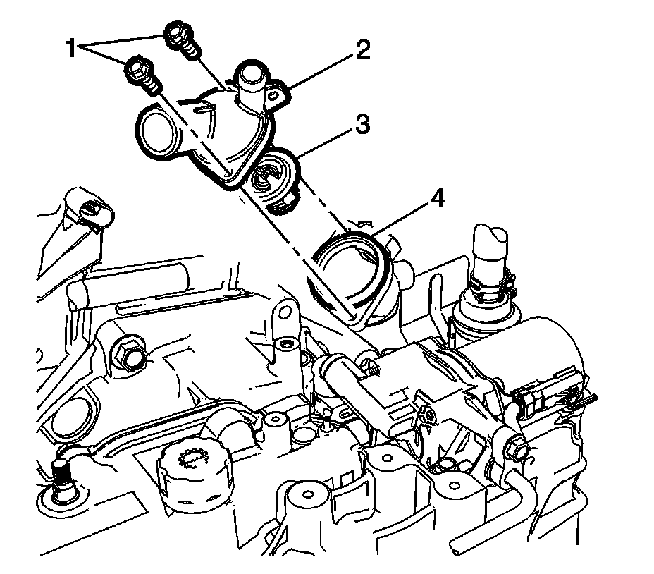 5. Remove the engine coolant thermostat (3) and discard the seal (4).
