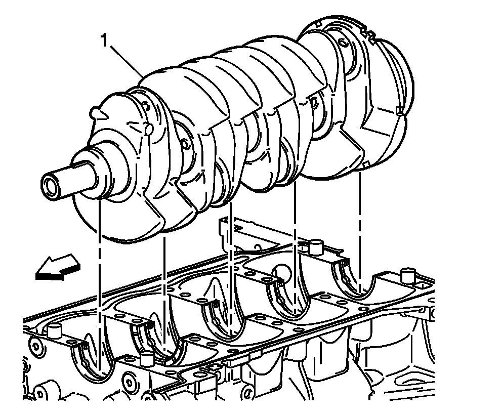 1. Install the upper crankshaft bearings (1) and lubricate bearing surfaces with engine oil.