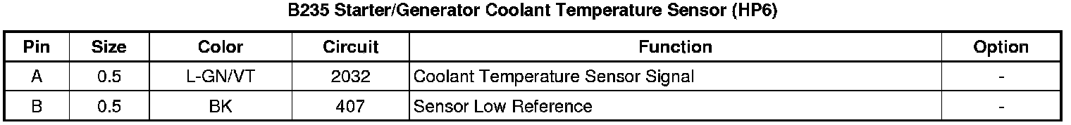 B235 Starter/Generator Coolant Temperature Sensor (HP6)