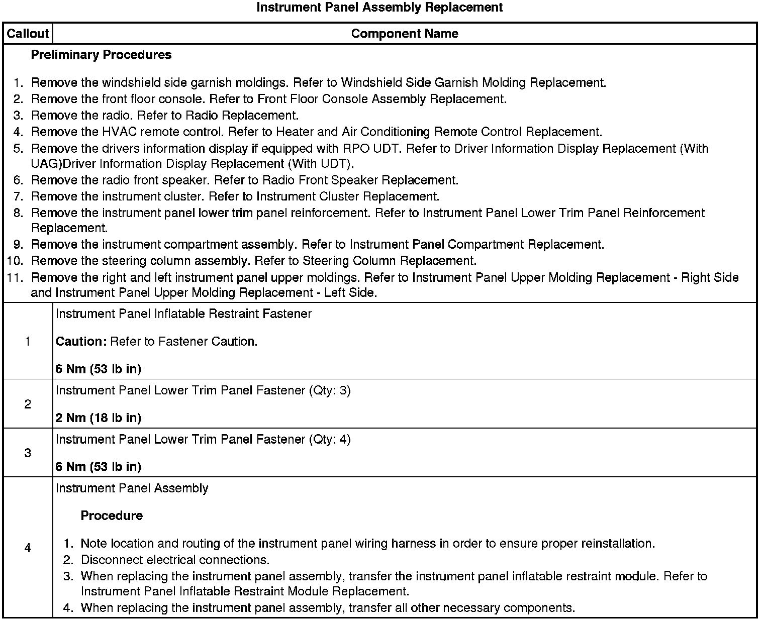Instrument Panel Assembly Replacement