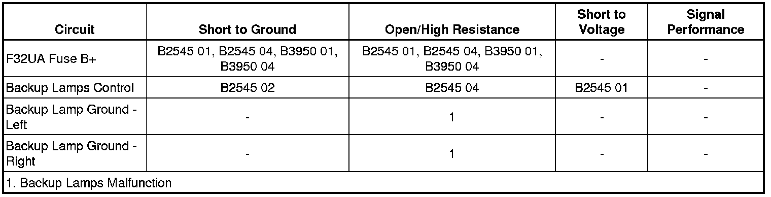With the engine running and the transmission in the reverse position, the transmission control module (TCM) sends a serial data message to the body control module (BCM). The message indicates that the gear selector is in the reverse position. The BCM applies battery voltage to the backup lamps control circuit illuminating the backup lamps. Once the driver moves the gear selector out of the reverse position, a message is sent by the TCM via serial data requesting the BCM to remove battery voltage from the backup lamps control circuit. The engine must be running for the backup lamps to operate.