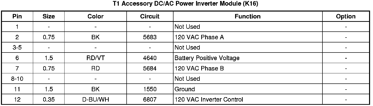 T1 Accessory DC/AC Power Inverter Module (K16)