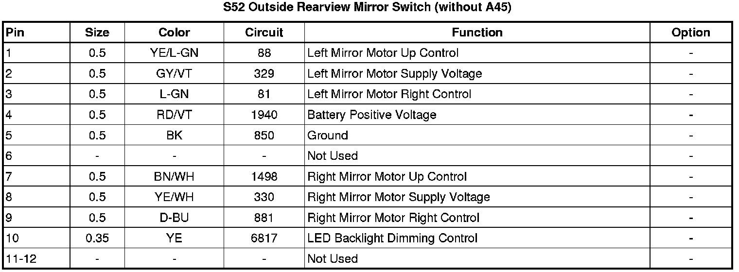 S52 Outside Rearview Mirror Switch (without A45)