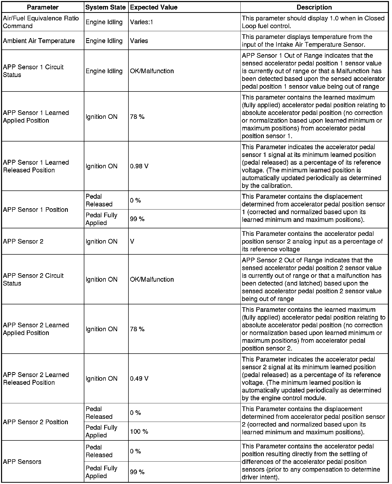 The Engine Control Module Scan Tool Data List contains all engine-related parameters that are available on the scan tool. The list is arranged in alphabetical order. A given parameter may appear in any one of the data lists, and in some cases may appear more than once, or in more than one data list in order to group certain related parameters together.