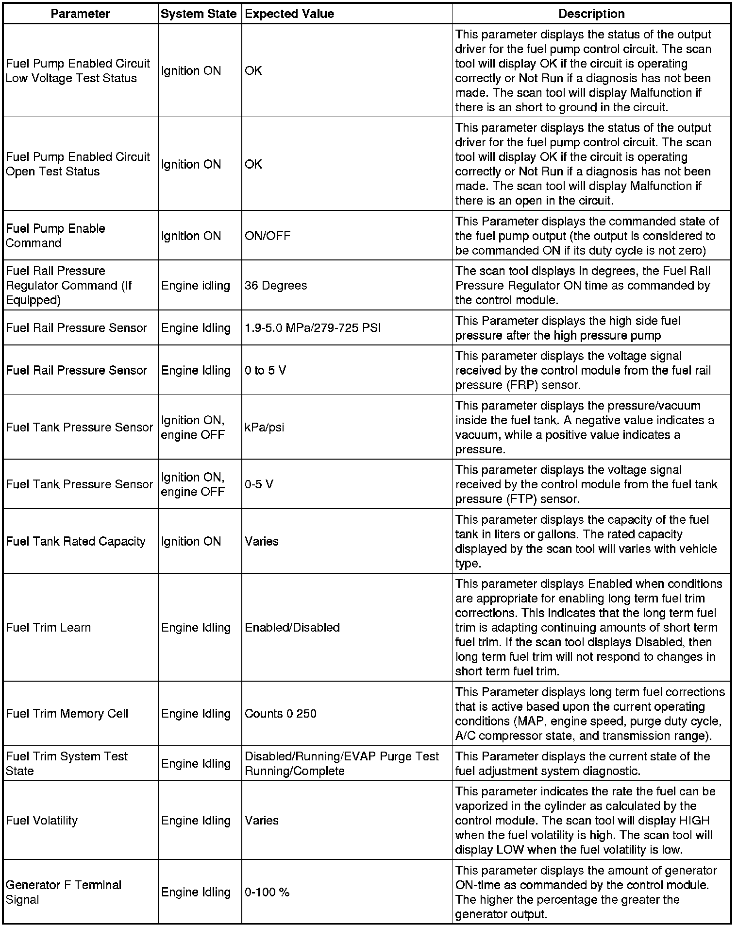 The scan tool values from a properly running engine may be used for comparison with the engine you are diagnosing. The Engine Scan Tool Data List represents values that would be seen on a normally running engine.