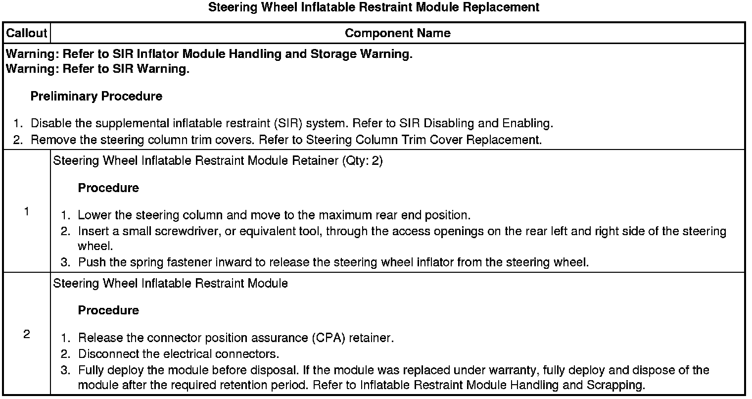 Steering Wheel Inflatable Restraint Module Replacement