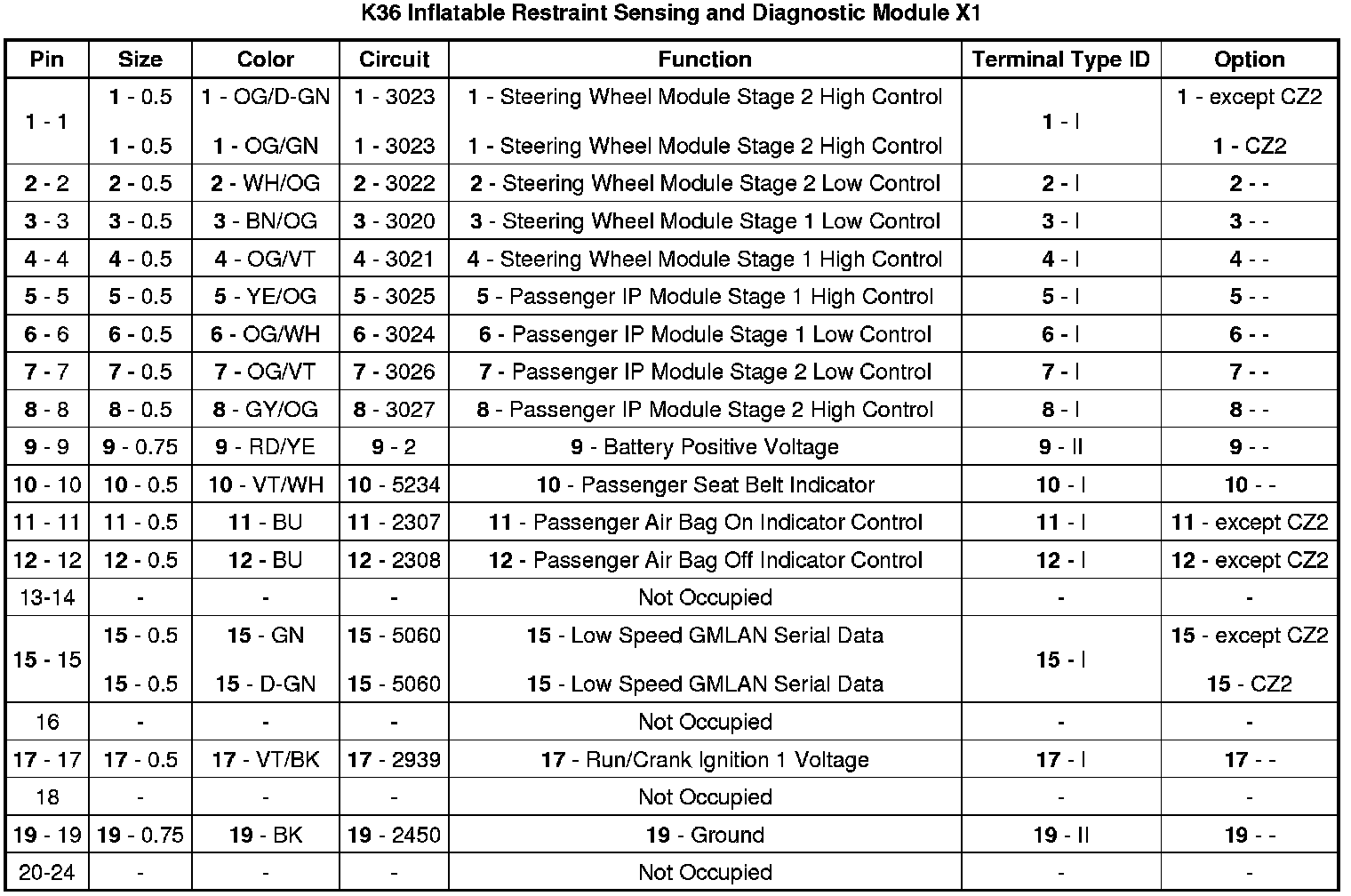 K36 Inflatable Restraint Sensing and Diagnostic Module X1