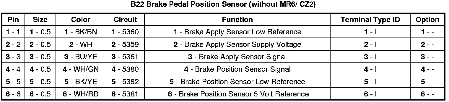 B22 Brake Pedal Position Sensor (without MR6/ CZ2)