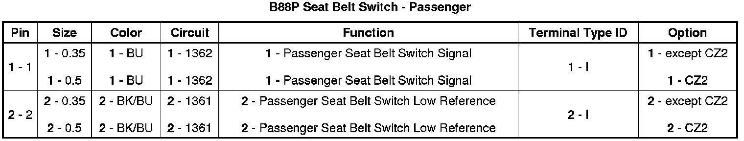 B88P Seat Belt Switch - Passenger