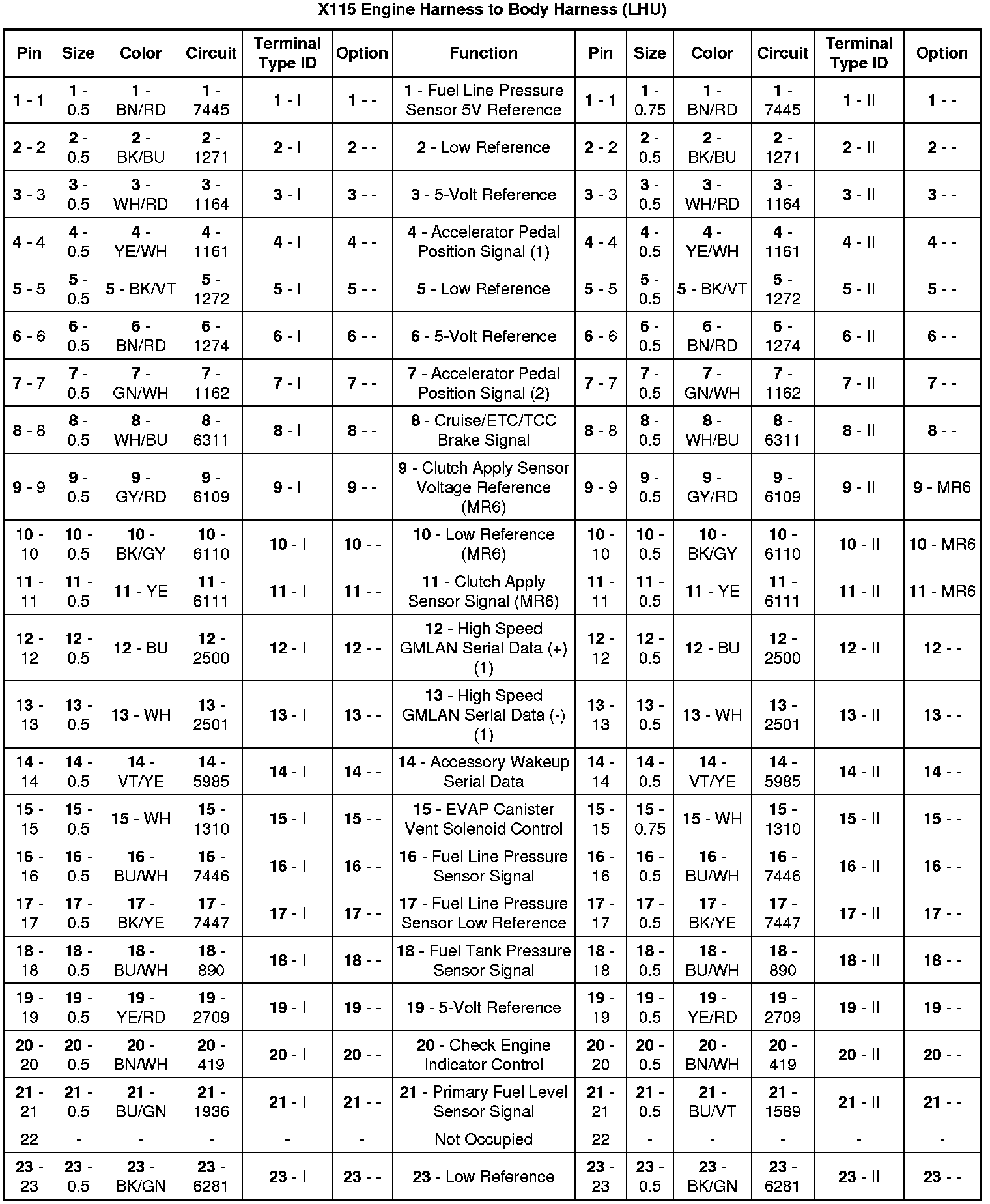 X115 Engine Harness to Body Harness (LHU)