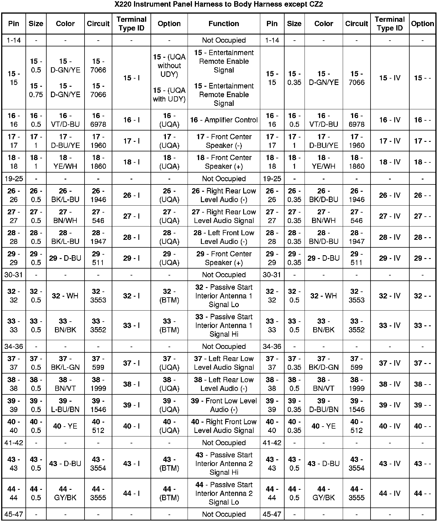 X220 Instrument Panel Harness to Body Harness except CZ2
