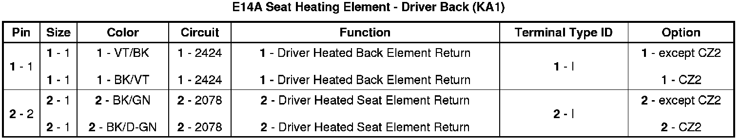 Seat Heating Element - Driver Back (KA1)