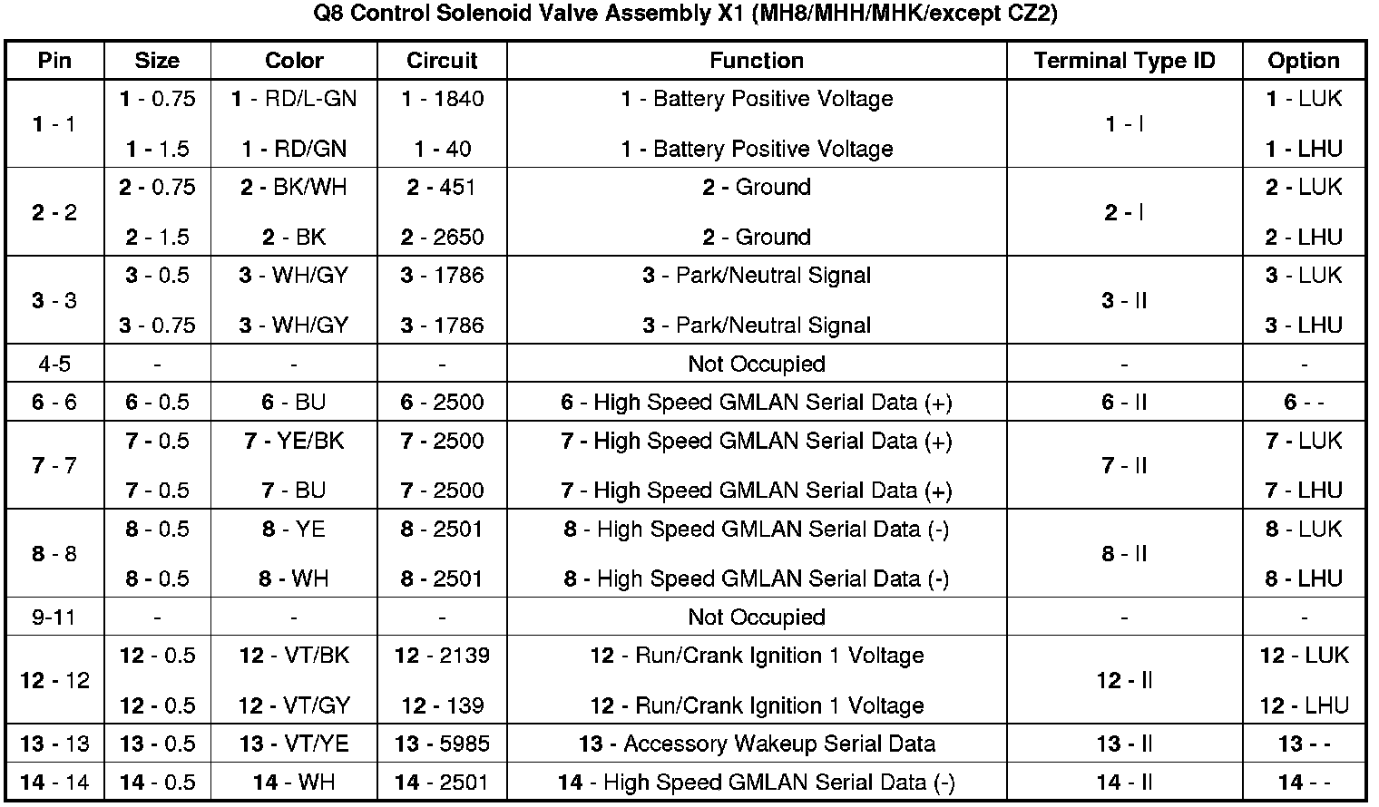 Q8 Control Solenoid Valve Assembly X1 (MH8/MHH/MHK/except CZ2)