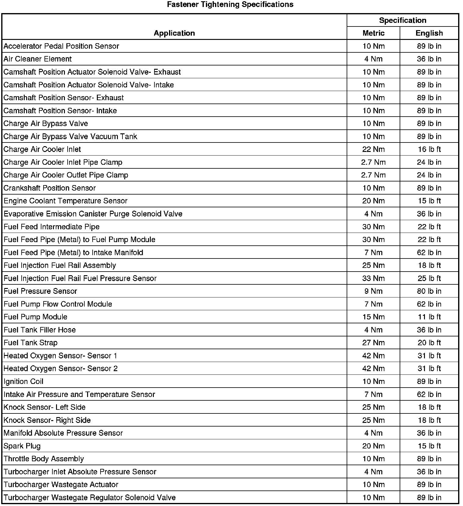 Fastener Tightening Specifications