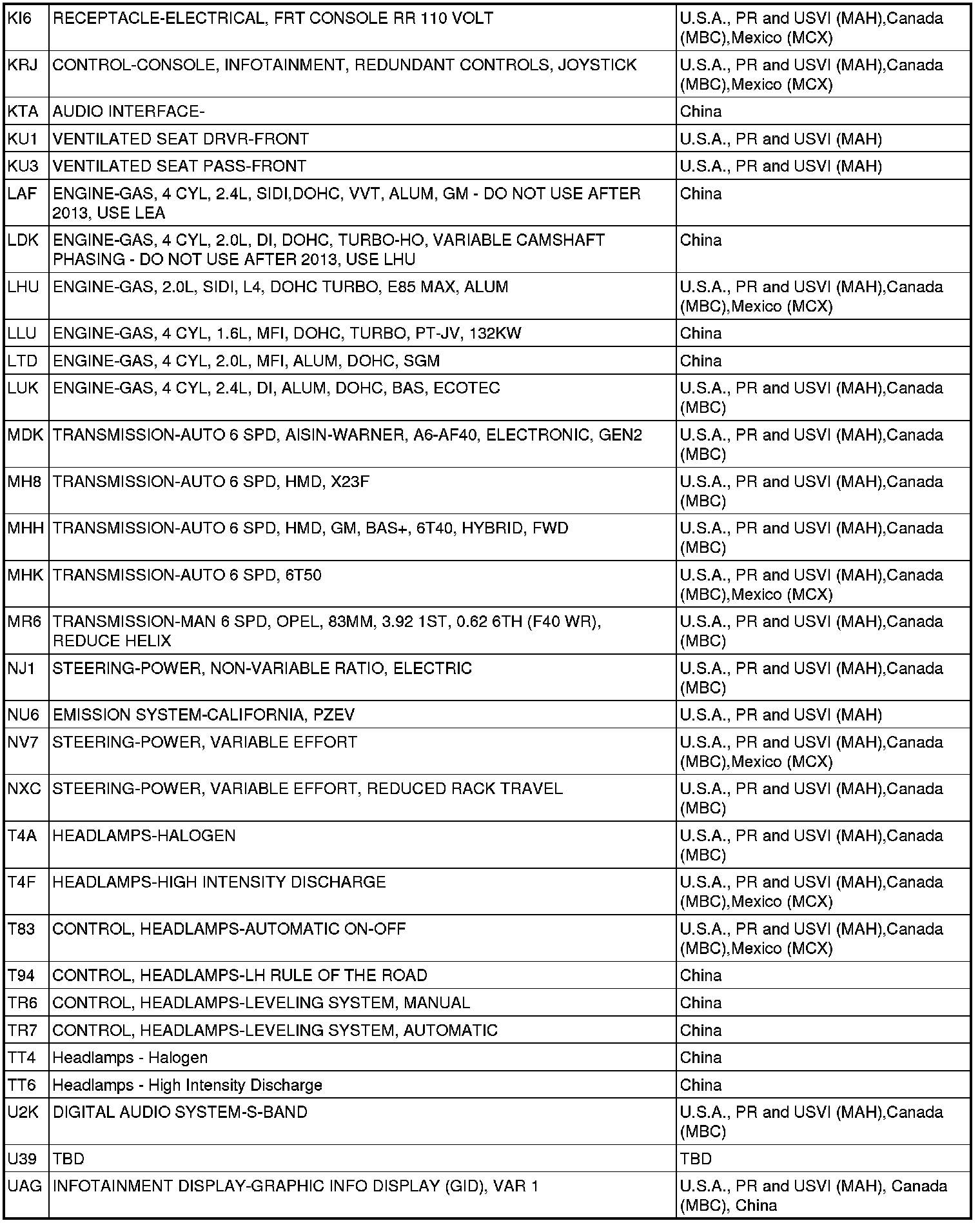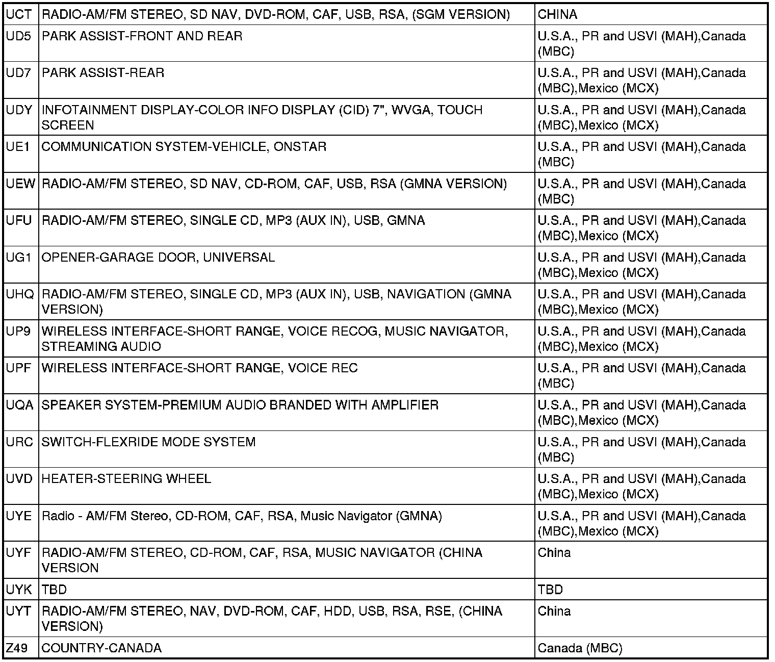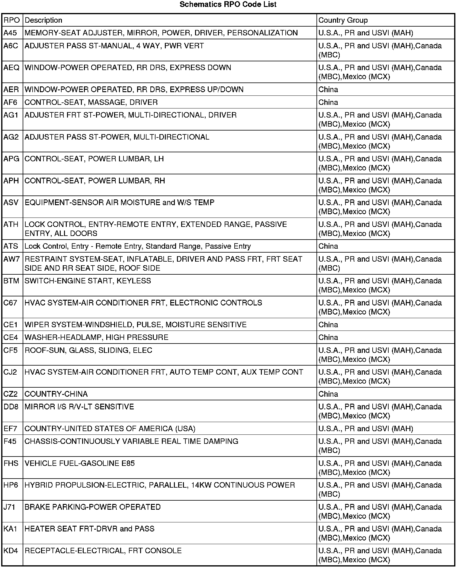 Schematics RPO Code List