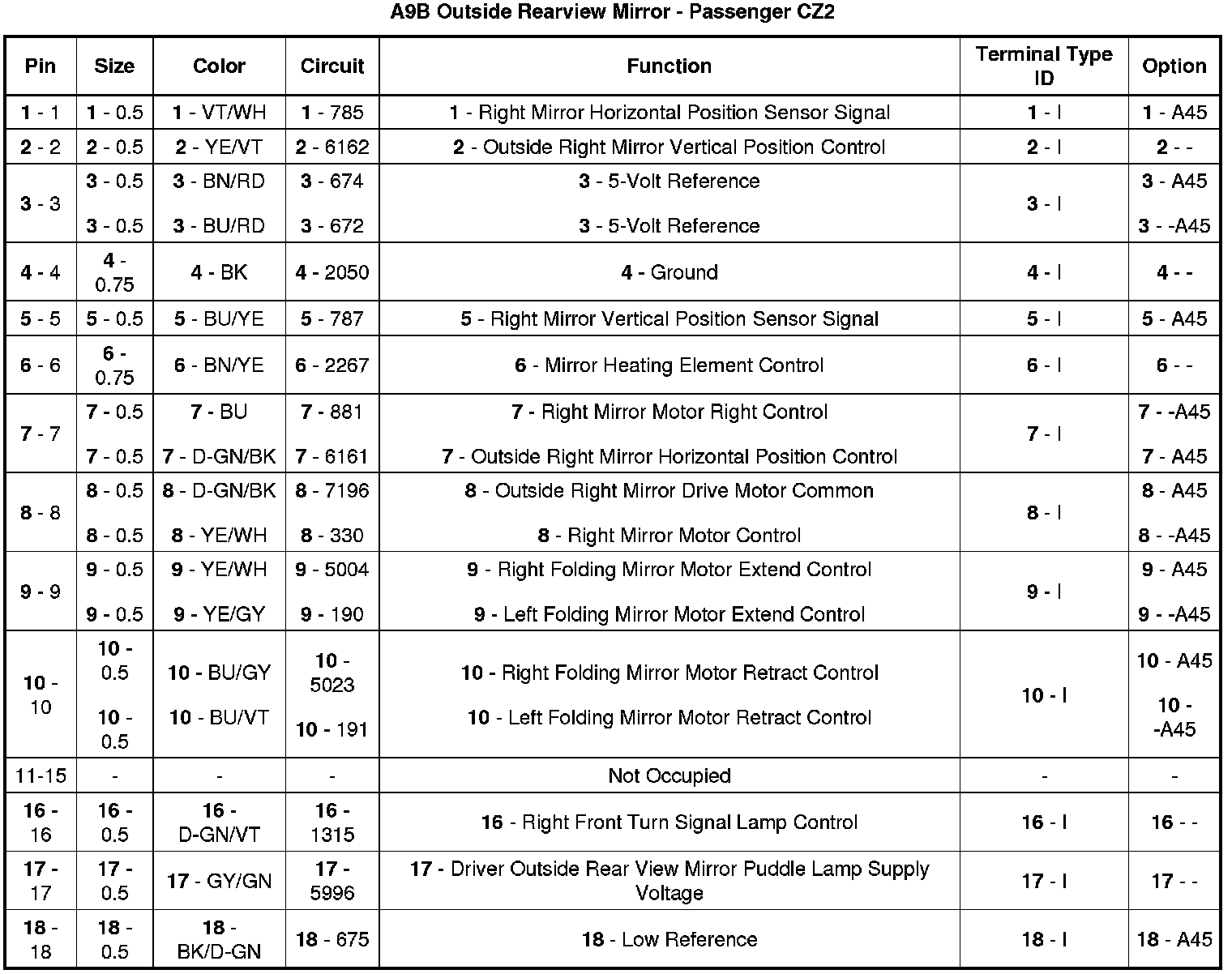 A9B Outside Rearview Mirror - Passenger CZ2