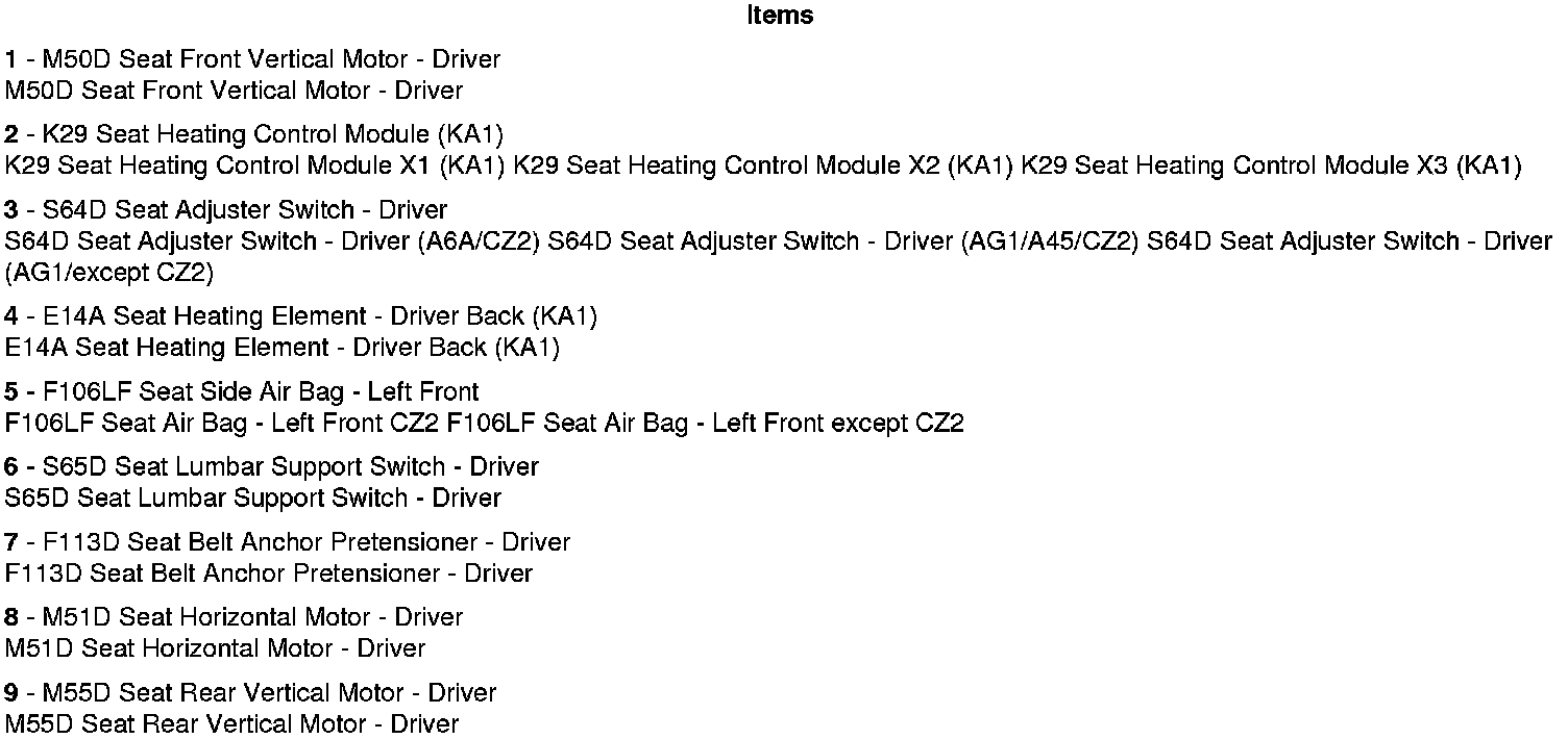 Bottom of Driver Seat Components (except A45)