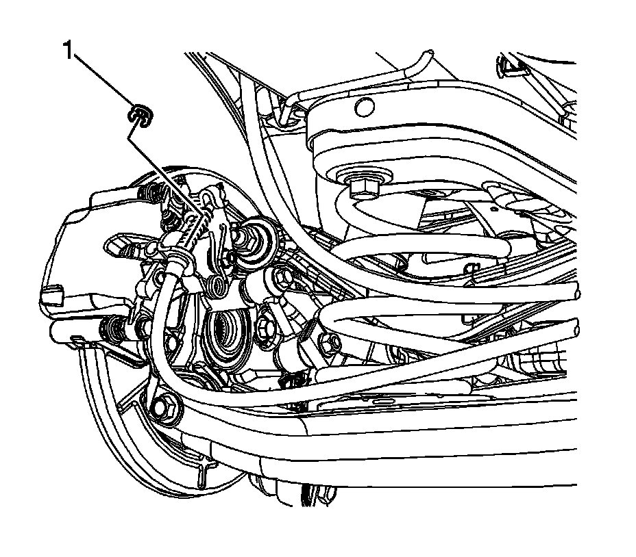 2. Remove the tire and wheel assembly. Refer to Tire and Wheel Removal and Installation Removal and Replacement.
