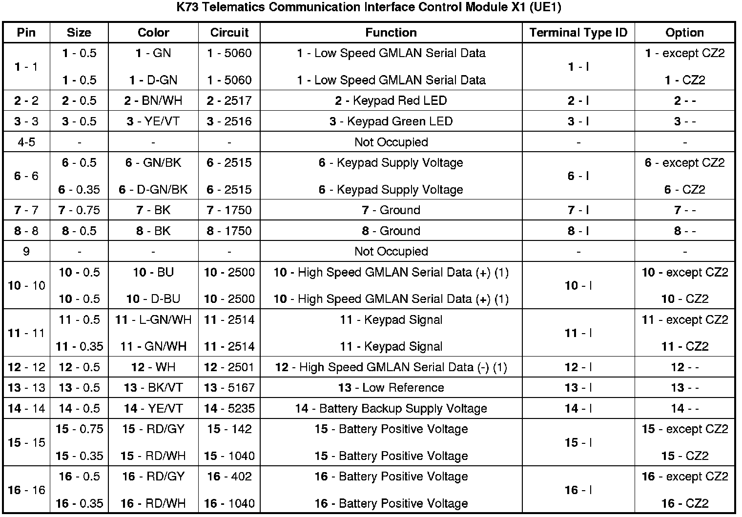 Telematics Communication Interface Control Module X1 (UE1)