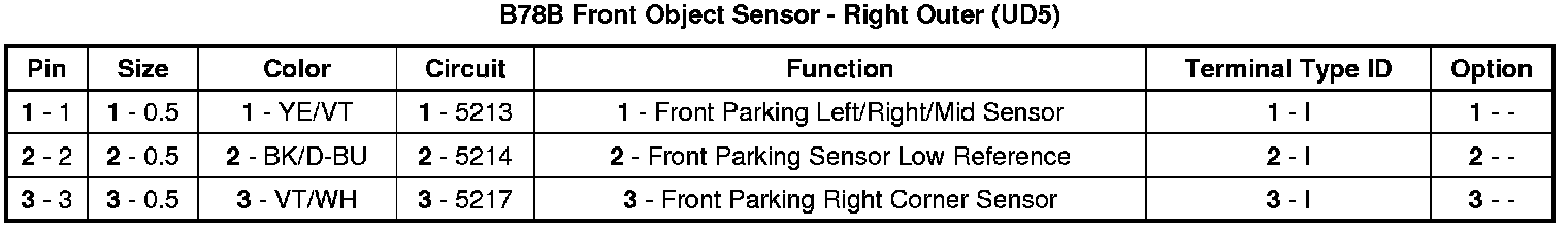 B78B Front Object Sensor - Right Outer (UD5)
