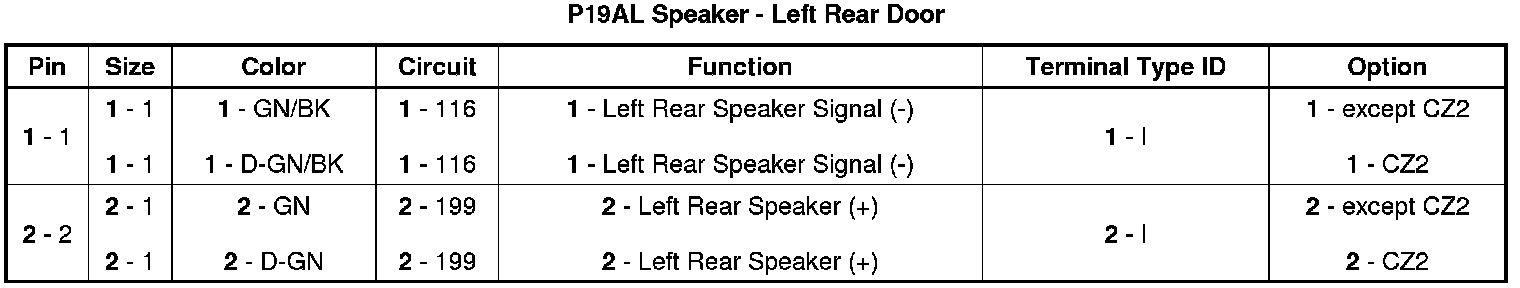 P19AL Speaker - Left Rear Door