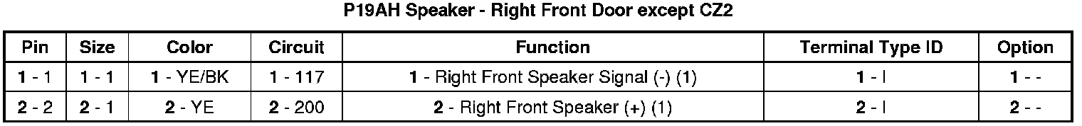 P19AH Speaker - Right Front Door except CZ2