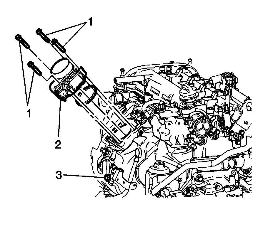 8. Install the throttle body (2). Refer to Throttle Body Assembly Replacement Removal and Replacement.