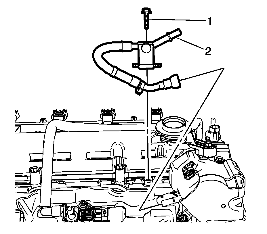 7. Disconnect the evaporative emission (EVAP) canister purge tube (1) from the intake manifold. Refer to Plastic Collar Quick Connect Fitting Service Service and Repair.