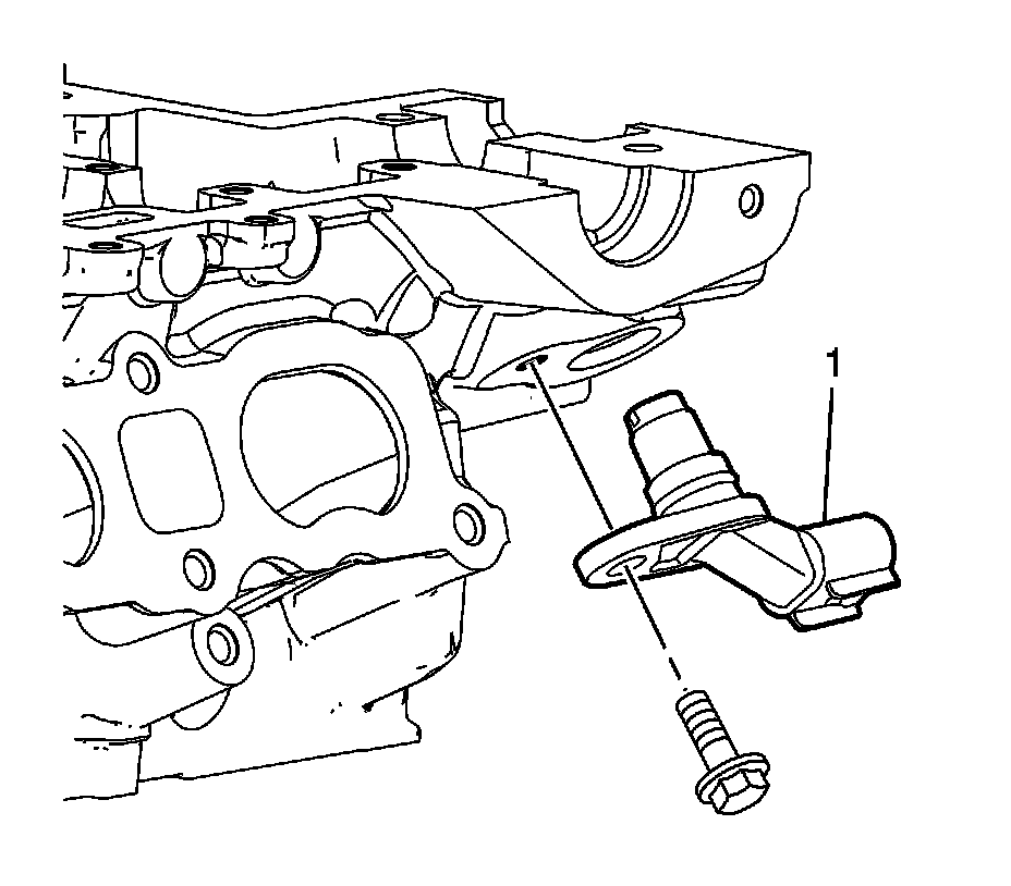 9. Install the intake camshaft position sensor (1) and bolt. Tighten the bolt to 10 Nm (89 lb in).