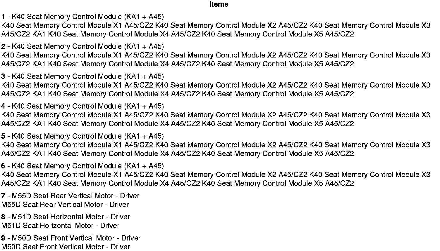 Bottom of the Driver Seat Components (with A45)