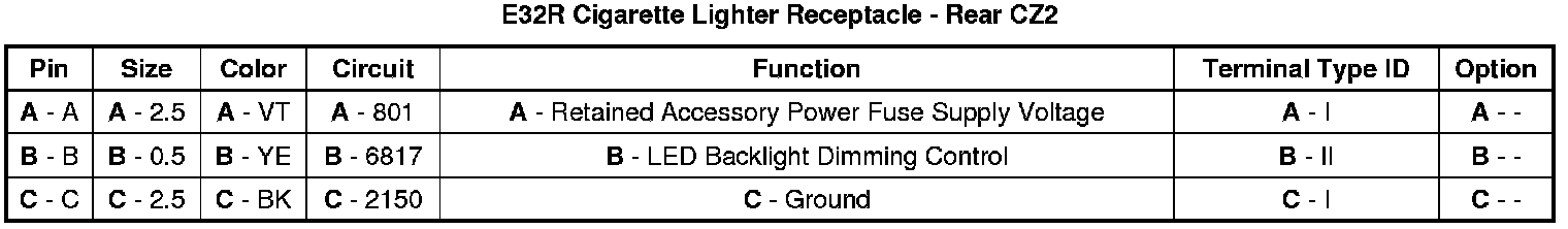 Cigarette Lighter Receptacle - Rear CZ2