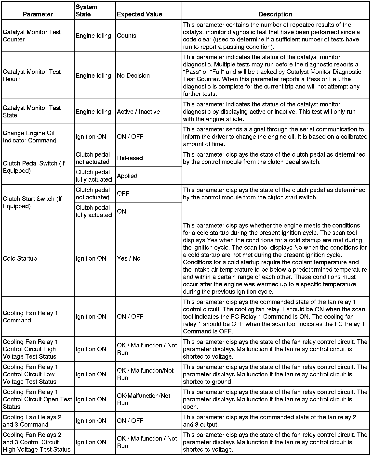 Only the parameters listed below are referenced in this service manual for use in diagnosis.