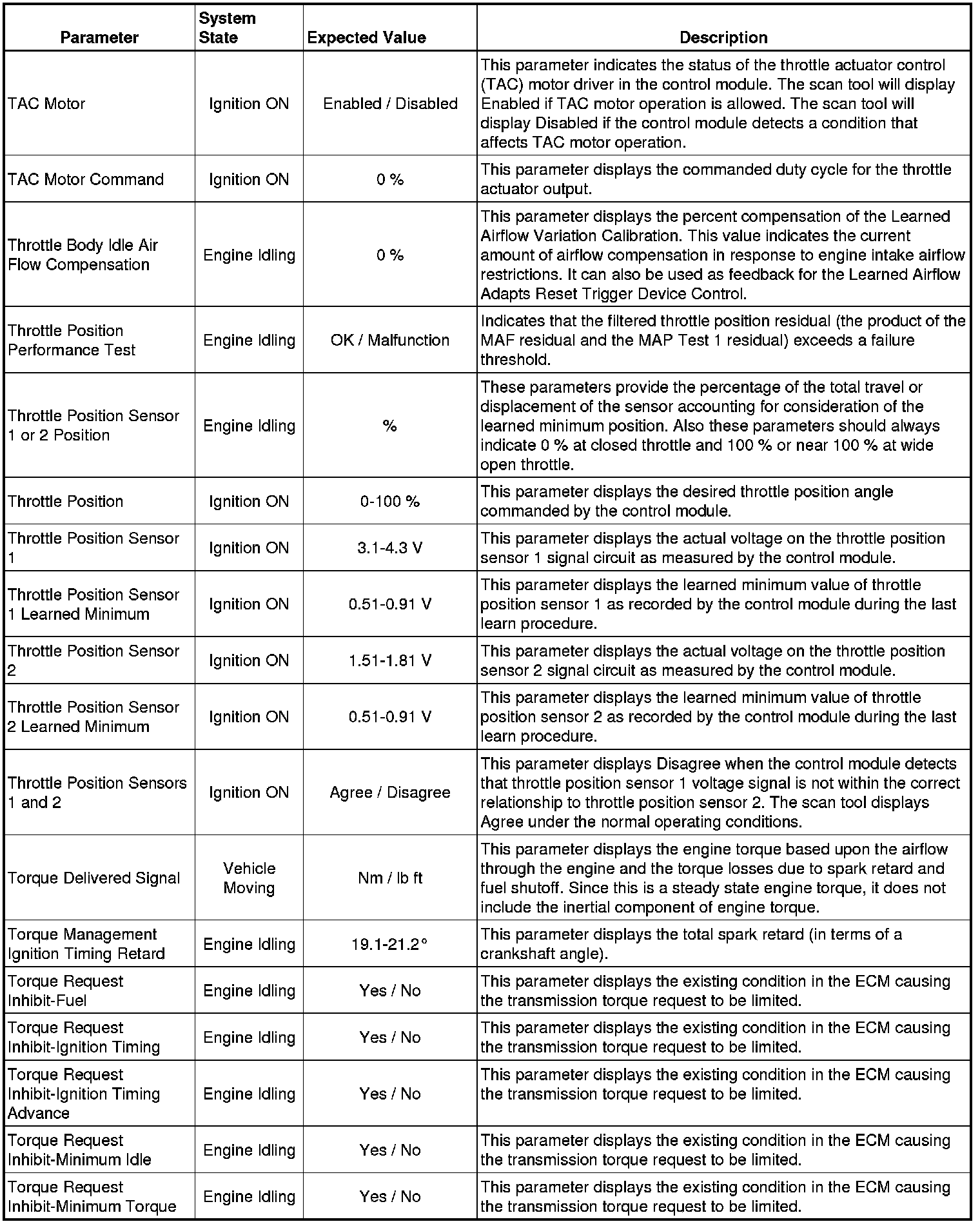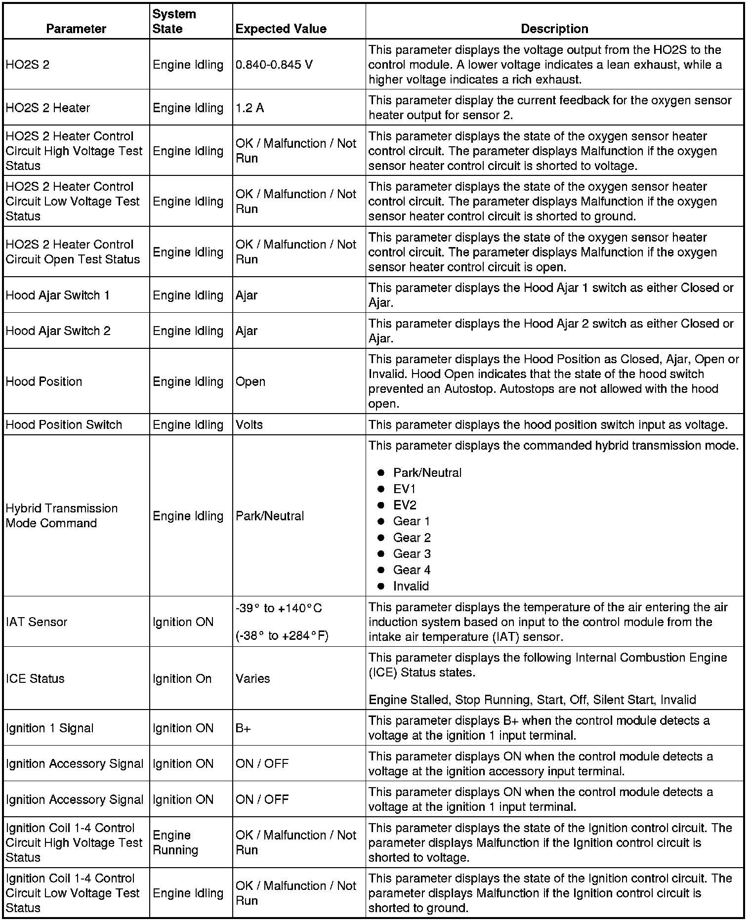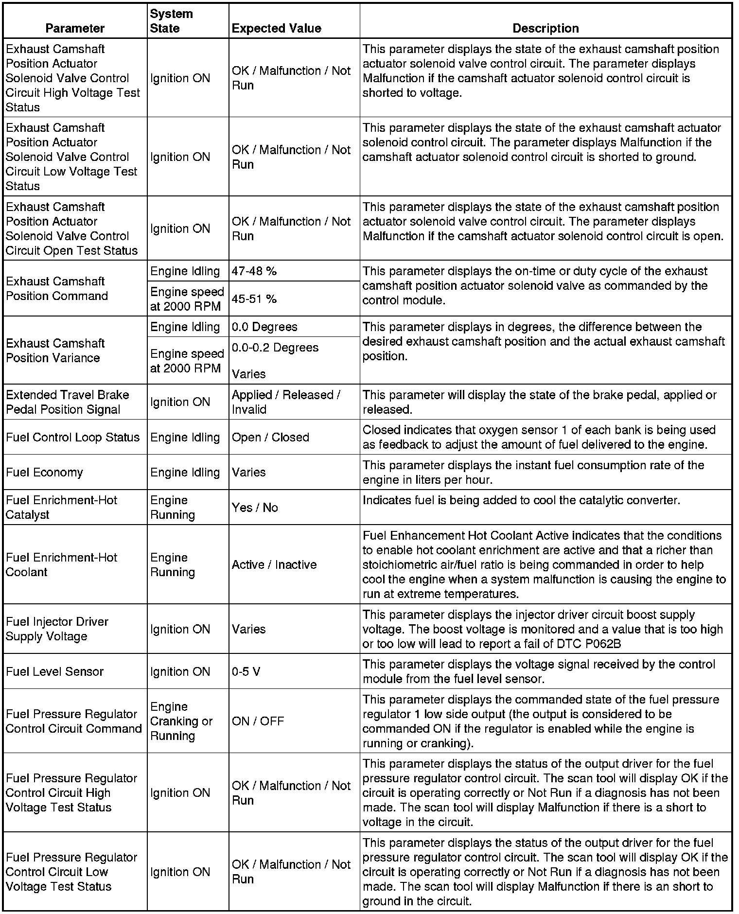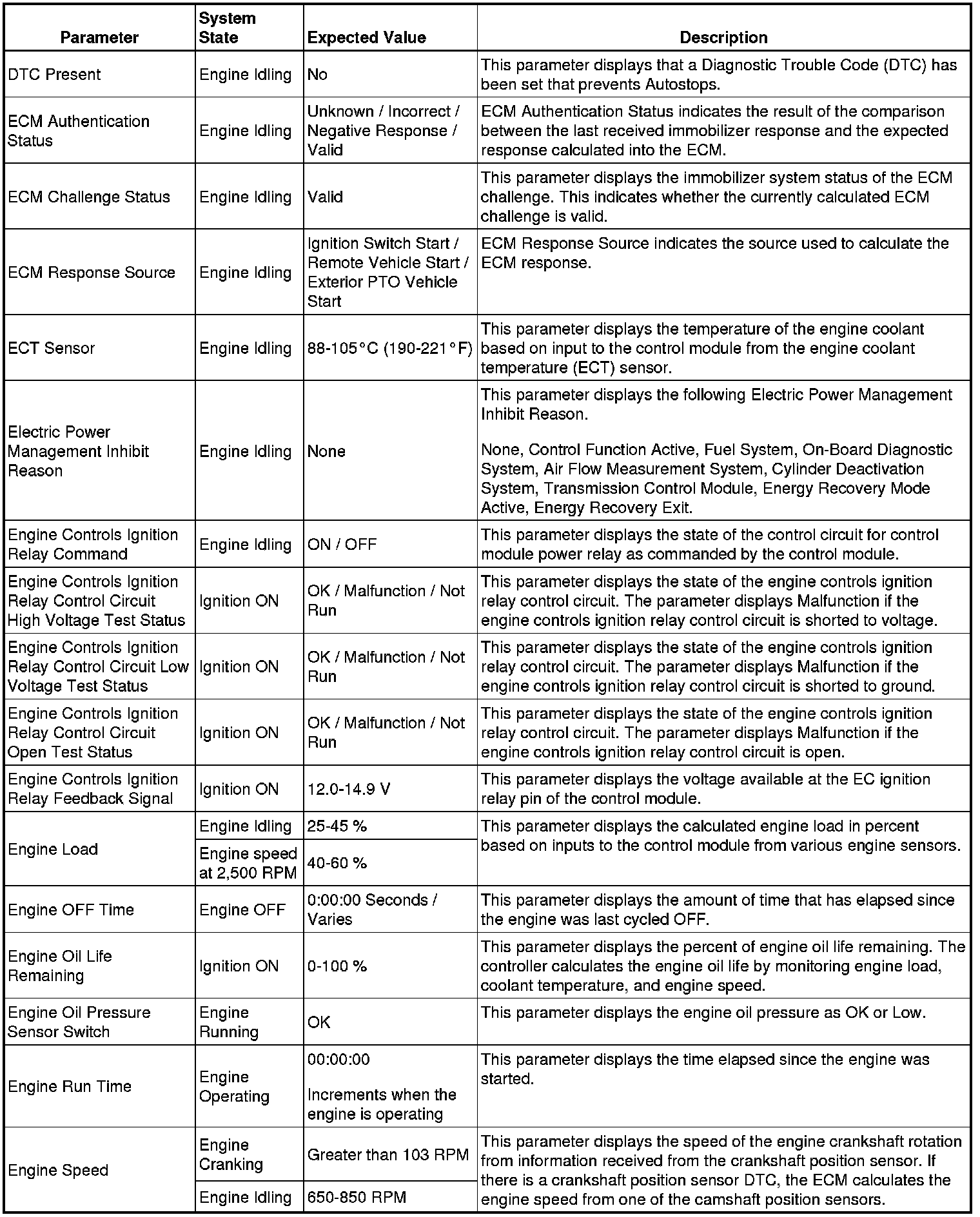 The Engine Control Module Scan Tool Data List contains all engine-related parameters that are available on the scan tool. The list is arranged in alphabetical order. A given parameter may appear in any one of the data lists, and in some cases may appear more than once, or in more than one data list in order to group certain related parameters together.