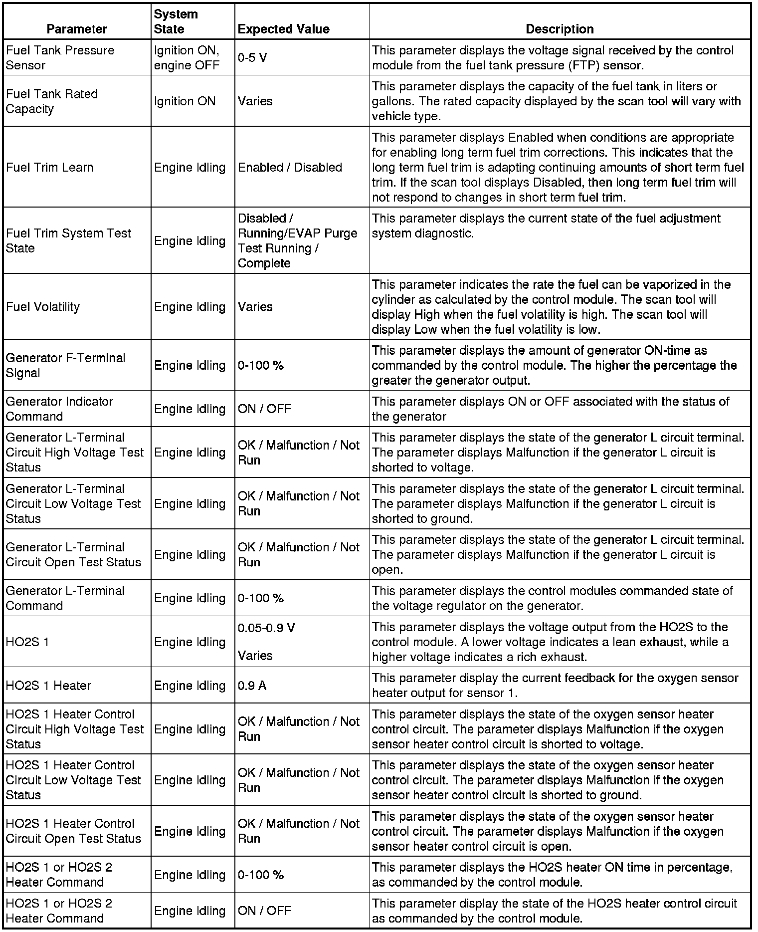 The scan tool values from a properly running engine may be used for comparison with the engine you are diagnosing. The Engine Scan Tool Data List represents values that would be seen on a normally running engine.